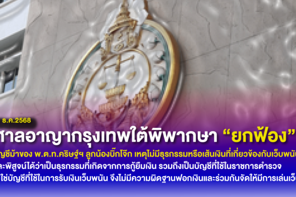 ศาลอาญากรุงเทพใต้ พิพากษายกฟ้อง คดีบัญชีม้า พ.ต.ท.คริษฐ์ ลูกน้องคนสนิท บิ๊กโจ๊ก